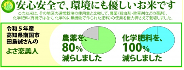 農薬も極力つかわない特別栽培のよさこい美人は、とても美味しい安全安心のお米です。